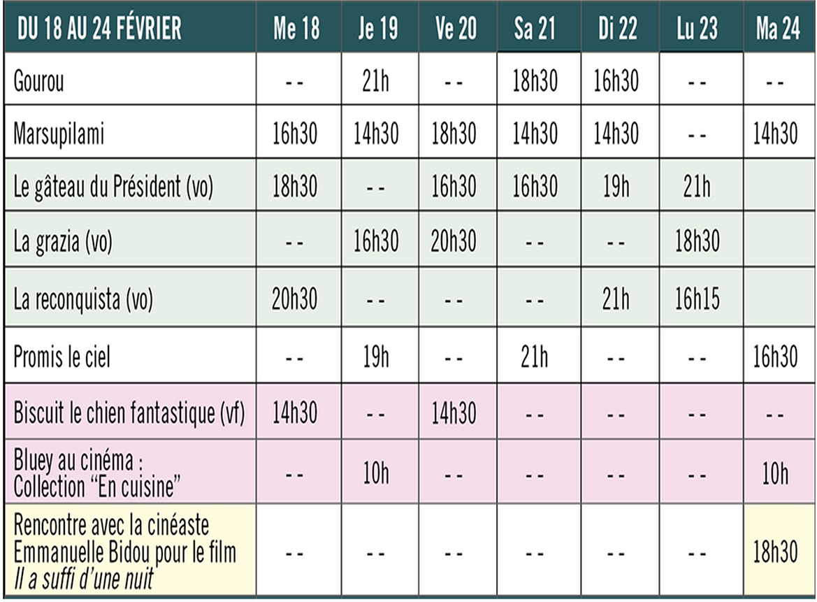 SEMAINE DU 18 au 24 FÉVRIER 2026