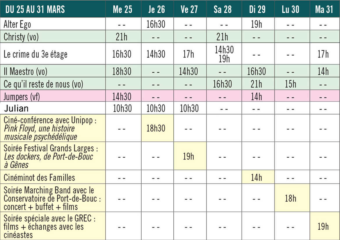 SEMAINE DU 25 au 31 mars 2026