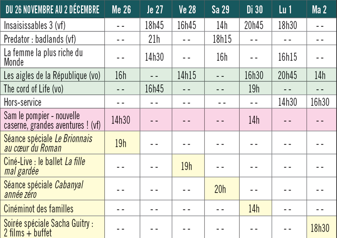 SEMAINE DU 26 novembre au 2 décembre 2025